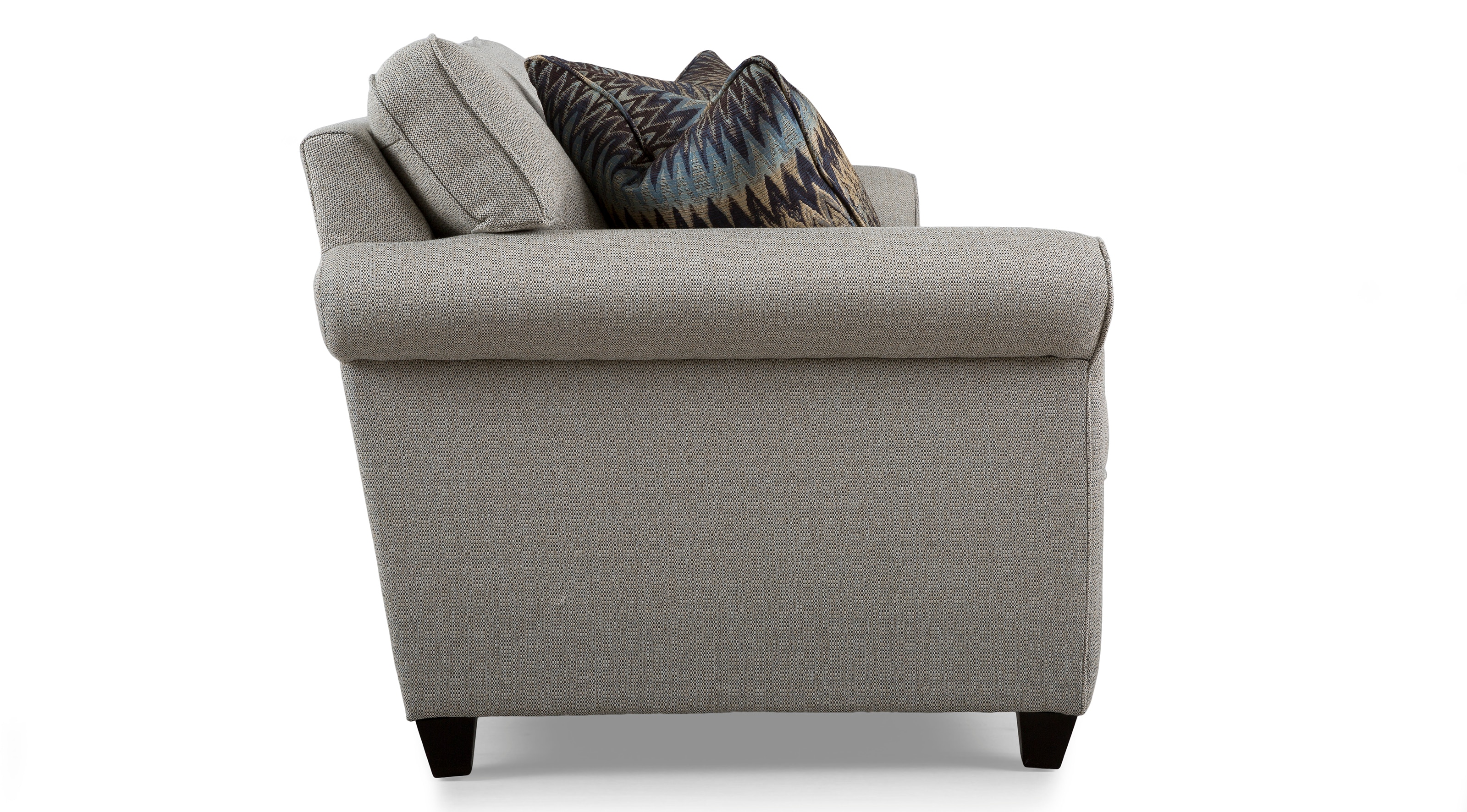 Cozy grey sofa in modern living room interior.